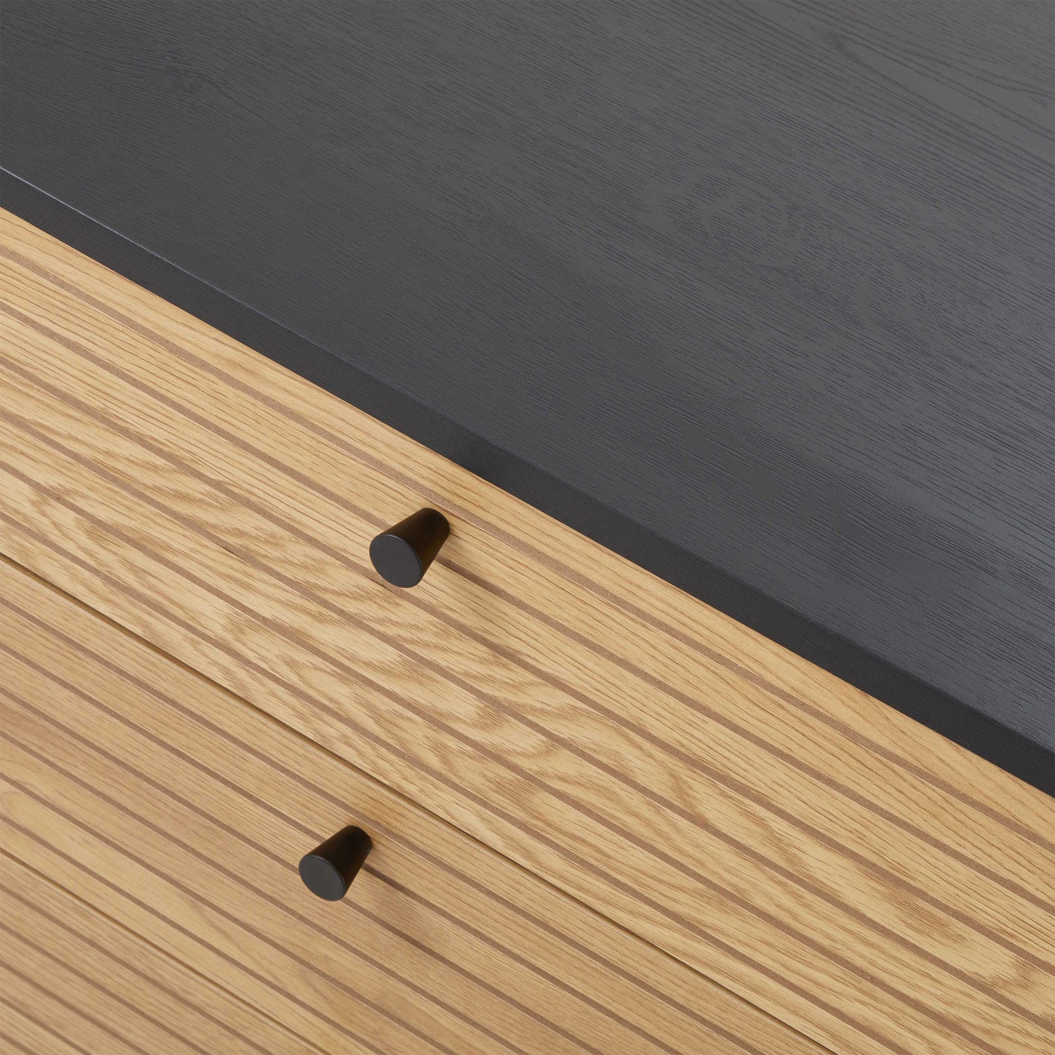 Eine Kommode ist eine Kommode ist eine Kommode? Nein, mit dem Einheitslook macht die Modernist Kommode definitiv Schluss. Das moderne Möbelstück kombiniert naturfarbenes Eichenfurnier mit MDF und Metall in Schwarz – bei geradliniger Formensprache und dezenten Füßen, die optisch für Leichtigkeit sorgen. Die hochwertige Ausfertigung fällt hingegen buchstäblich ins Gewicht: Schwer und massiv ist die Modernist Kommode solide und stabil aufgestellt, z.B. im Flur, im Schlafzimmer oder im Gästezimmer.