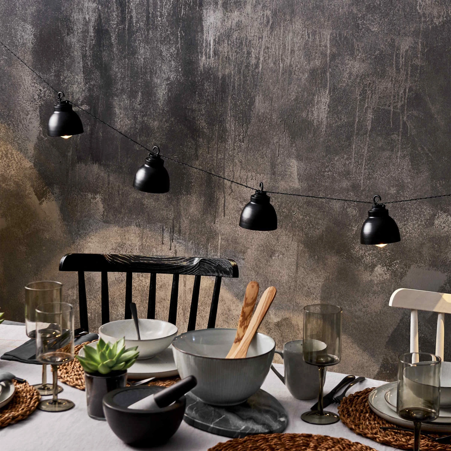 Metall-Lampenkette Mit Stecker WAREHOUSE In Schwarz